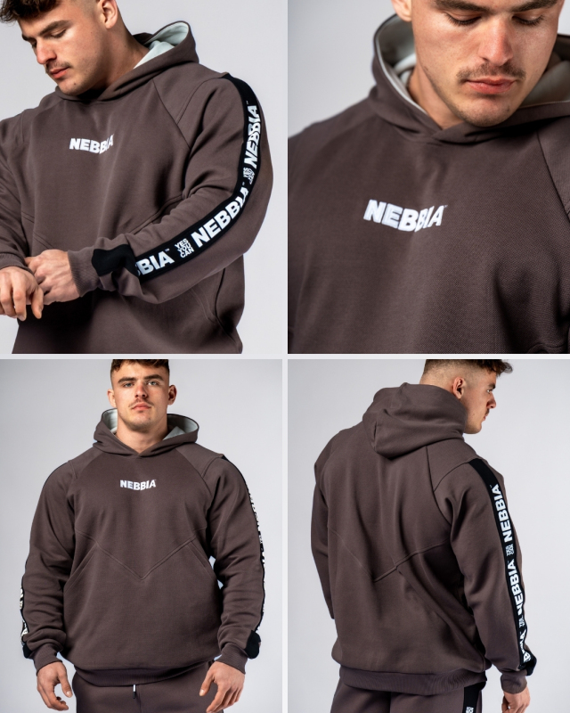 Tato pánská sportovní mikina od značky NEBBIA v hnědé barvě je pro muže se smyslem pro styl! Pánská sportovní mikina od značky NEBBIA v earth tonu odstínu je moderní alternativa ke klasické černé – vypadá fresh, kombinuje se jednoduše a dodá tvému gym looku extra dimenzi, která tě odliší. Heavyweight bavlněná konstrukce vydrží tvrdé tréninky a poskytne ti maximální komfort pro warm-up i rest days. Oblíbený NEBBIA pas na rukávech je ikonický detail, který zná každý lifter. Měkká vnitřní strana a výrazná silueta jsou zárukou autentického bodybuilding vibe. NEBBIA pánská sportovní mikina – když konzistentnost je klíč!